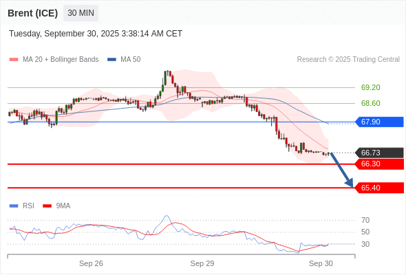 在 67.90 之下,看跌,目标价位为 66.30 ,然后为 65.40 。