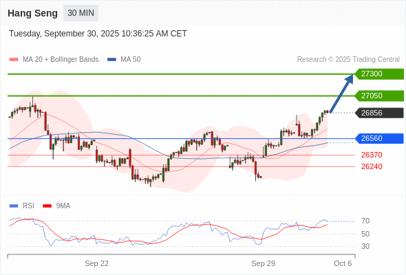 在 26560 之上,看涨,目标价位为 27050 ,然后为 27300 。