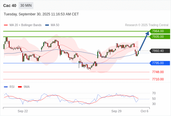 在 7795.00 之上,看涨,目标价位为 7935.00 ,然后为 7964.00 。