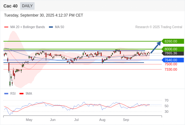 Cac 40 短线: 箱体震荡。