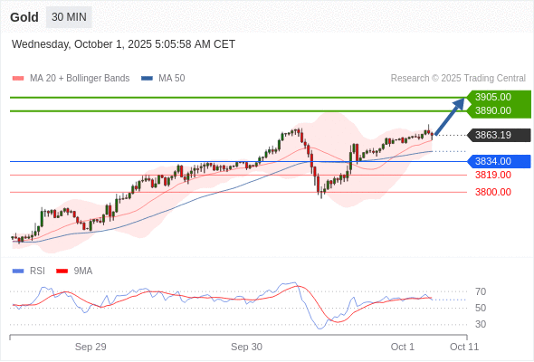 交易策略: 在 3834.00 之上,看涨,目标价位为 3890.00 ,然后为 3905.00 。