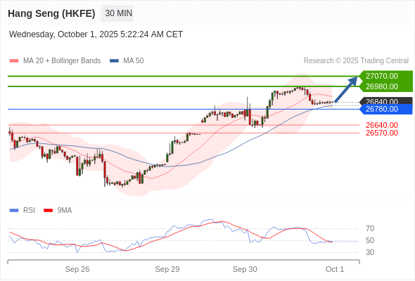 在 26780.00 之上,看涨,目标价位为 26980.00 ,然后为 27070.00 。