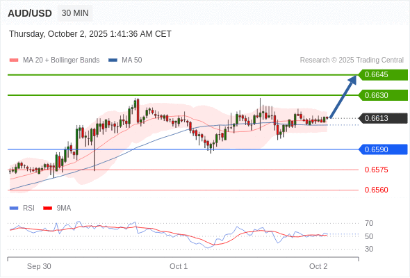 在 0.6590 之上,看涨,目标价位为 0.6630 ,然后为 0.6645 。