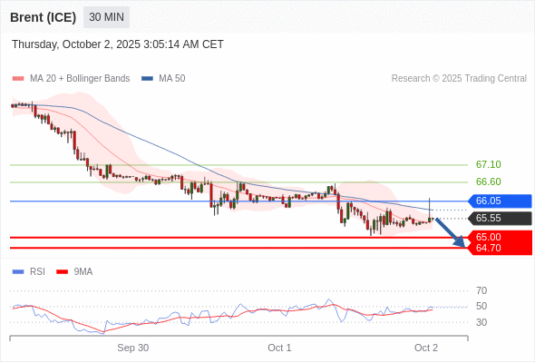 交易策略: 在 66.05 之下,看跌,目标价位为 65.00 ,然后为 64.70 。