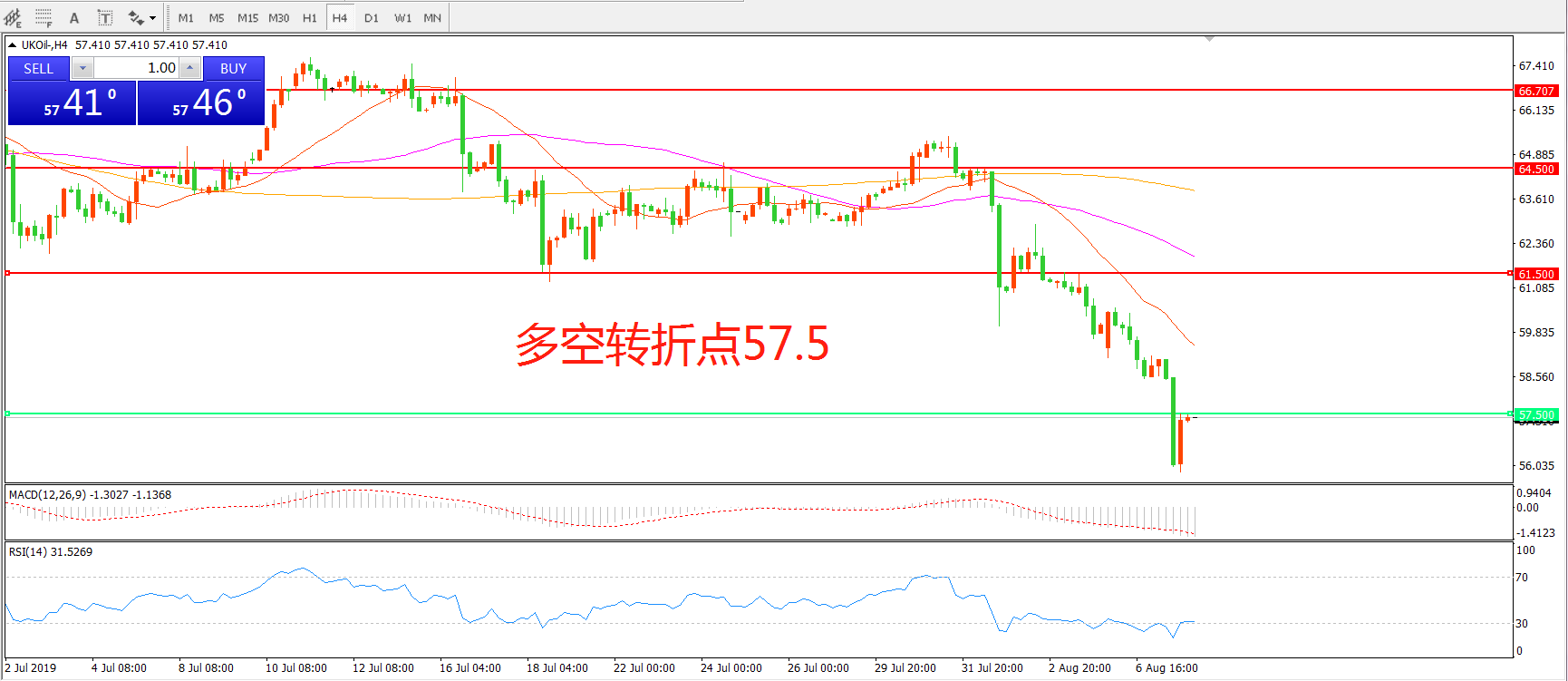 周三(8月7日)美国能源信息署(EIA)最新数据显示,截止8月2日当周,美国原油库存意外增长239万桶,而市场预期为减少285万桶,同时精炼油和汽油库存也同步攀升。全面利空的EIA数据表现导致布伦特原油暴跌,最终收报57.41美元/桶。近几日全球经济衰退风险也显著攀升,这令投资者开始逃离风险资产。