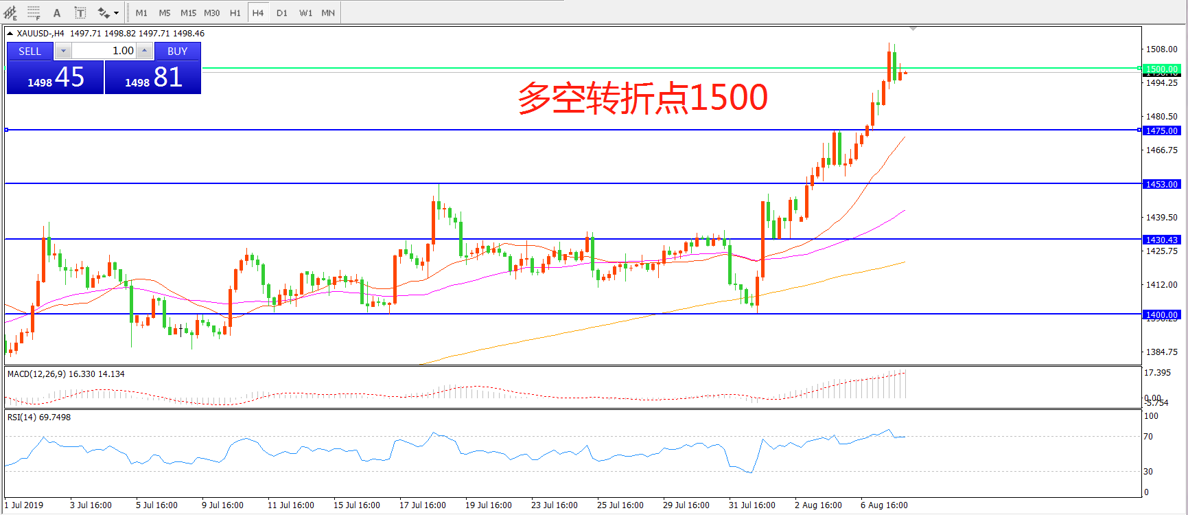 多空转折点:1500.00