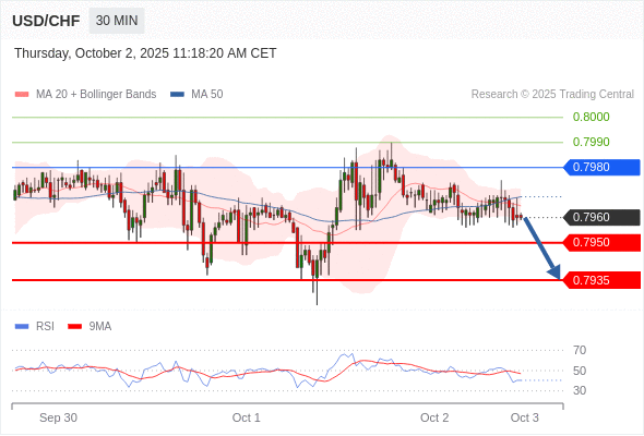 交易策略: 在 0.7980 之下,看跌,目标价位为 0.7950 ,然后为 0.7935 。