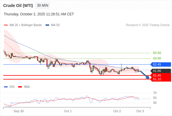 在 62.45 之下,看跌,目标价位为 61.45 ,然后为 61.10 。