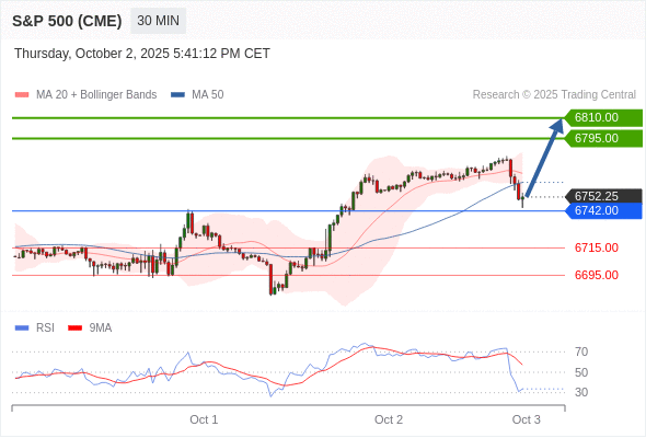 在 6742.00 之上,看涨,目标价位为 6795.00 ,然后为 6810.00 。