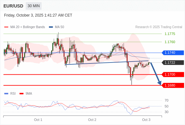 在 1.1740 之下,看跌,目标价位为 1.1700 ,然后为 1.1680 。