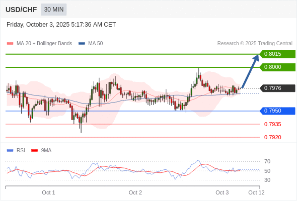 在 0.7950 之上,看涨,目标价位为 0.8000 ,然后为 0.8015 。
