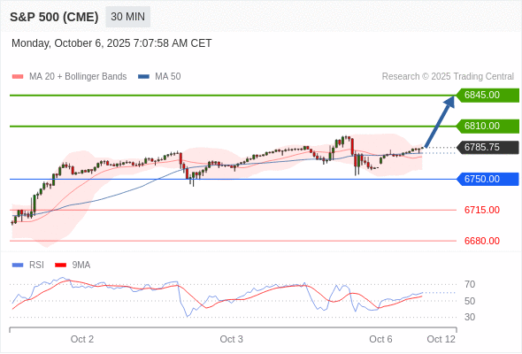 在 6750.00 之上,看涨,目标价位为 6810.00 ,然后为 6845.00 。