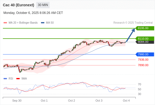 在 7980.00 之上,看涨,目标价位为 8110.00 ,然后为 8195.00 。
