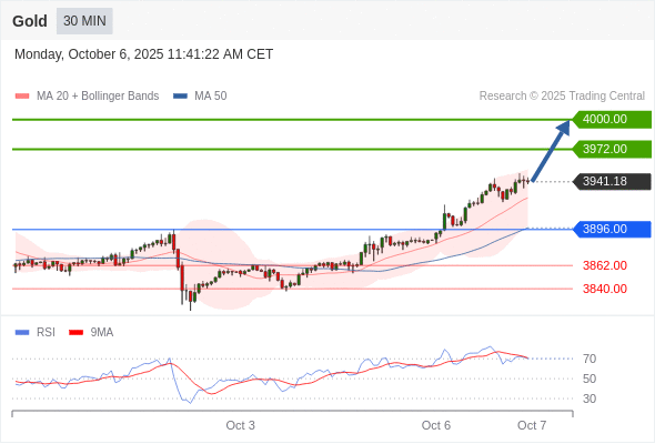 在 3896.00 之上,看涨,目标价位为 3972.00 ,然后为 4000.00 。