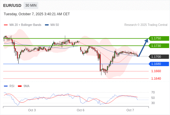 在 1.1680 之上,看涨,目标价位为 1.1730 ,然后为 1.1750 。