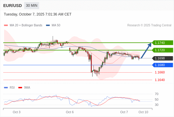 在 1.1680 之上,看涨,目标价位为 1.1720 ,然后为 1.1740 。