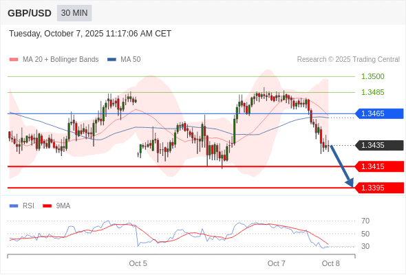 在 1.3465 之下,看跌,目标价位为 1.3415 ,然后为 1.3395 。