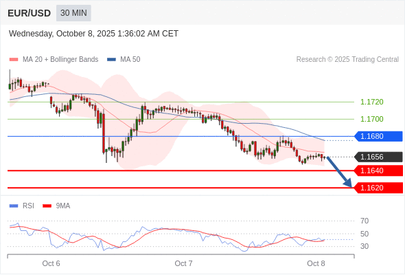 在 1.1680 之下,看跌,目标价位为 1.1640 ,然后为 1.1620 。