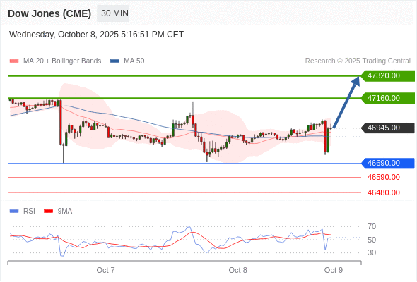 在 46690.00 之上,看涨,目标价位为 47160.00 ,然后为 47320.00 。