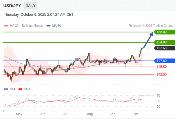 在 147.80 之上,看涨,目标价位为 154.80 ,然后为 158.80 。