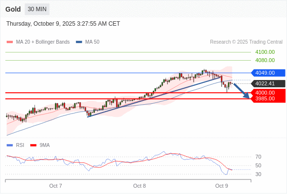 在 4049.00 之下,看跌,目标价位为 4000.00 ,然后为 3985.00 。