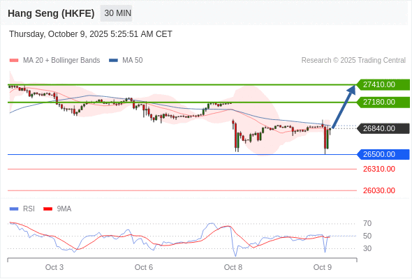 香港恒生指数期货 当日内: 目标位为27410.00。
