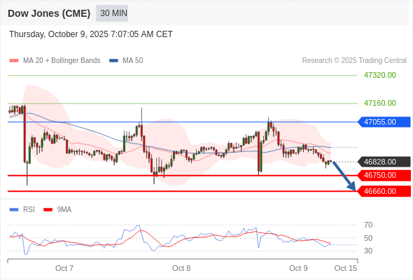 交易策略: 在 47055.00 之下,看跌,目标价位为 46750.00 ,然后为 46660.00 。