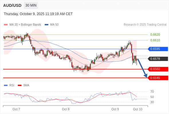 在 0.6595 之下,看跌,目标价位为 0.6560 ,然后为 0.6545 。