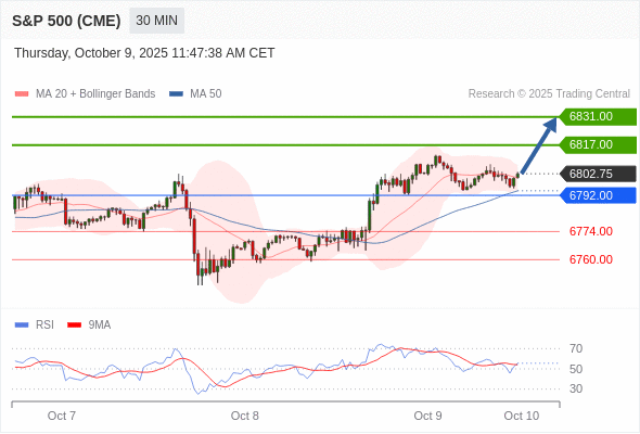 在 6792.00 之上,看涨,目标价位为 6817.00 ,然后为 6831.00 。