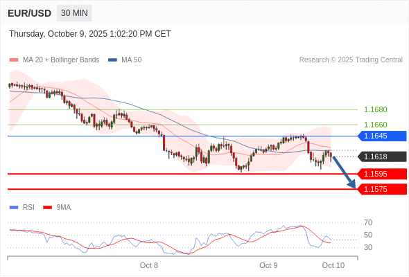 在 1.1645 之下,看跌,目标价位为 1.1595 ,然后为 1.1575 。