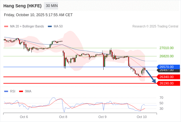 香港恒生指数期货 当日内: 短期关键阻力位在26570.00。
