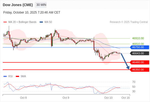 在 46750.00 之下,看跌,目标价位为 46480.00 ,然后为 46350.00 。