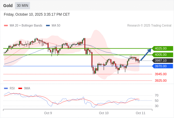 在 3970.00 之上,看涨,目标价位为 4005.00 ,然后为 4025.00 。