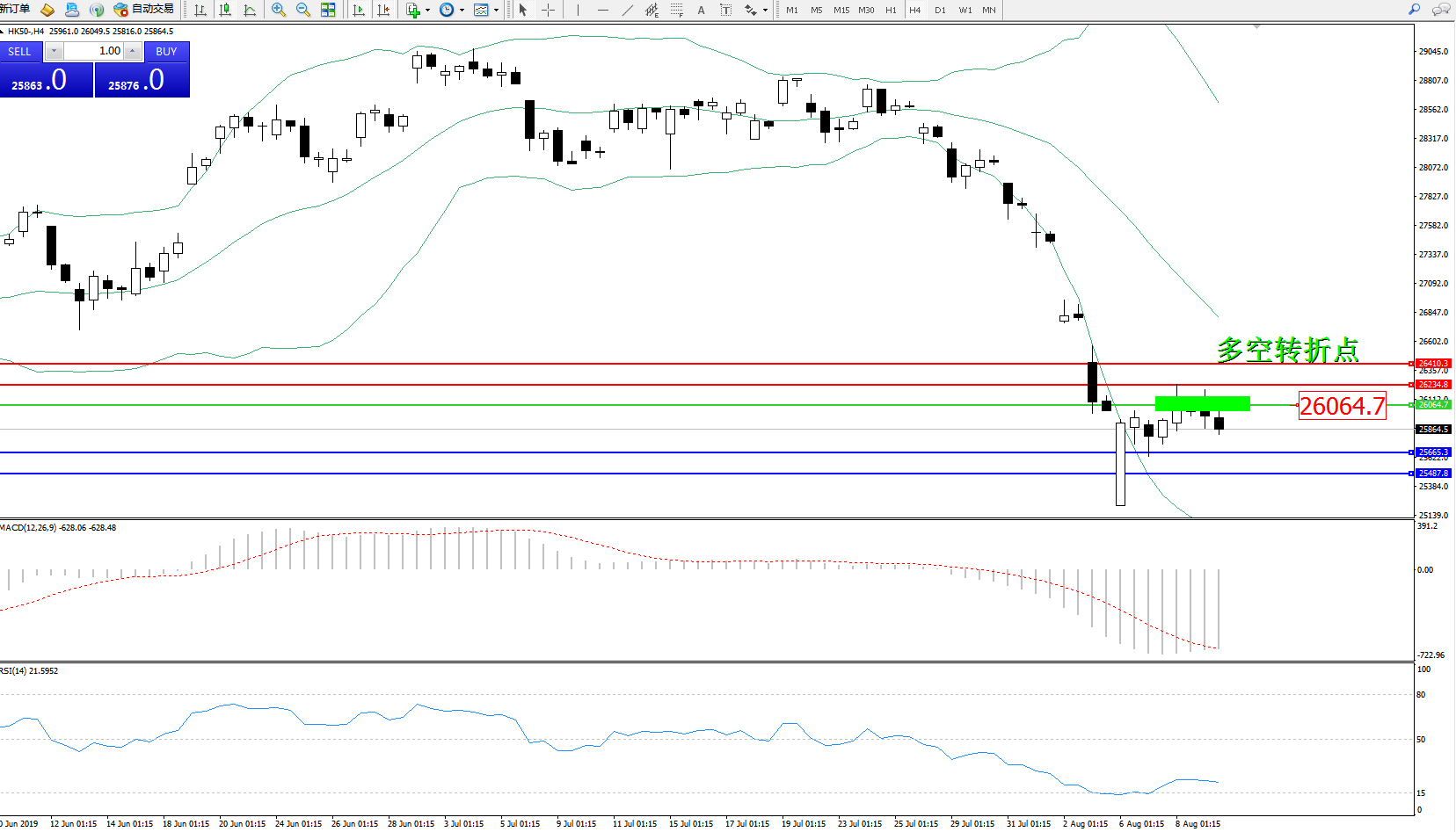 香港恒生指数8月9日(周五)收盘下跌181.47点,跌幅0.69%,报25939.30点;美联储再度降息的预期升温,隔夜美股强势大涨,整体外围市场氛围较好。股指高开低走,但在市况不明朗及仅憧憬减息的情况下,持续拖累港股的负面因素仍未除,恒指短期内恐仍将维持这个局势。港股总体形势已经在偏向好的方向在发展,今日只要能带量突破5日均线,那么市场的情绪又会被点燃。不过,港股于月初急跌后,连日上演反弹戏码,属于预期之内的技术反弹,而持续拖累港股的负面因素仍未除,恒指短期难转势,投资者需要为大市有反弹无升势做好准备。