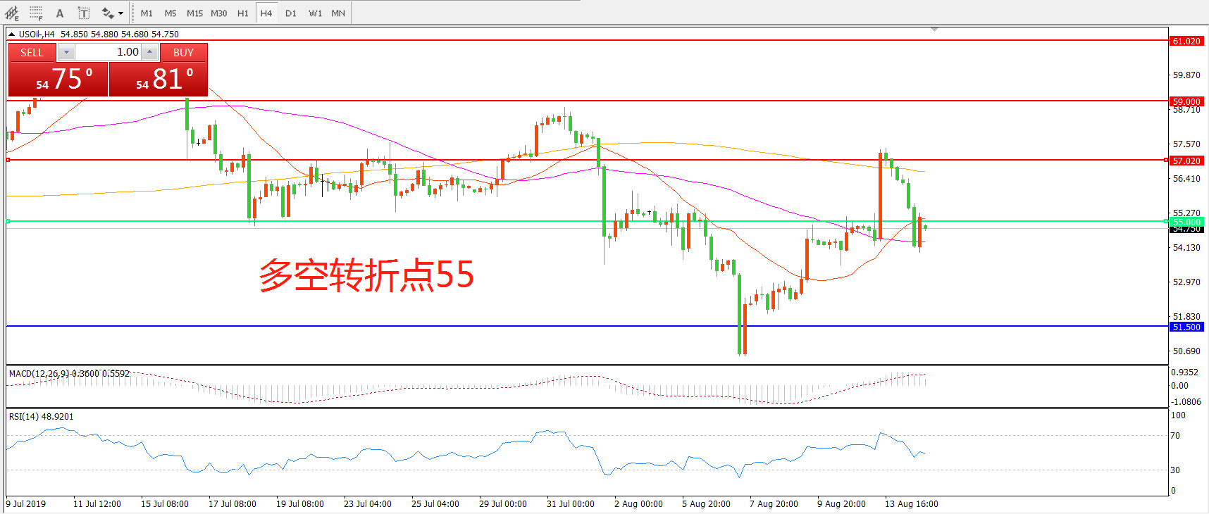 交易策略:在55.00之下看跌,目标51.50   49.00