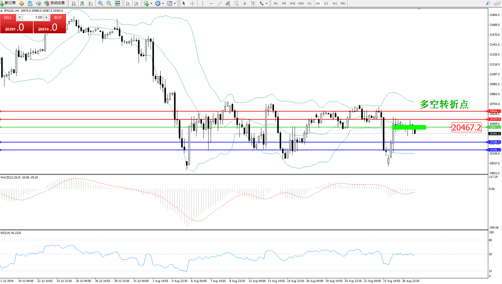 交易策略:20467下方看跌,目标20288、20196