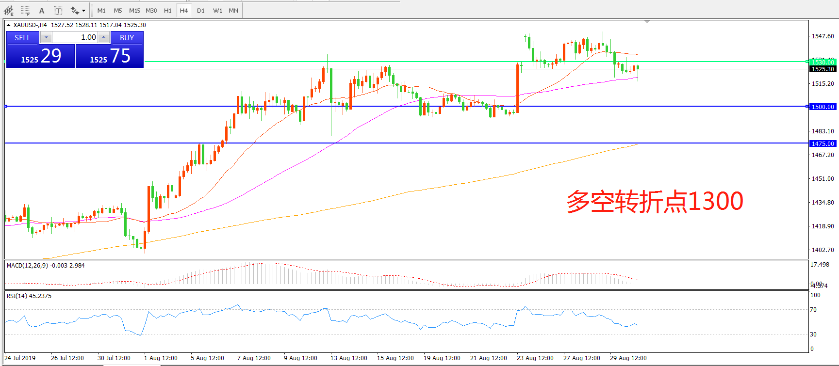 周五(8月30日),现货金价维持震荡形态,日内金价最高触及1532.99美元,最低触及1517.04美元,价格整体维持在整理区间。全球贸易局势有所缓和给金价带来压力,但全球经济放缓的担忧情绪和央行宽松预期始终支撑金价,特朗普升级贸易紧张局势导致的全球经济增长前景趋疲,美联储降息预期上升是支撑金价走高的主要因素,波斯湾潜在冲突和英国硬脱欧可能性大幅看涨,也进一步对金市提供支撑,本周市场焦点将转向非农和美联储主席鲍威尔的讲话。