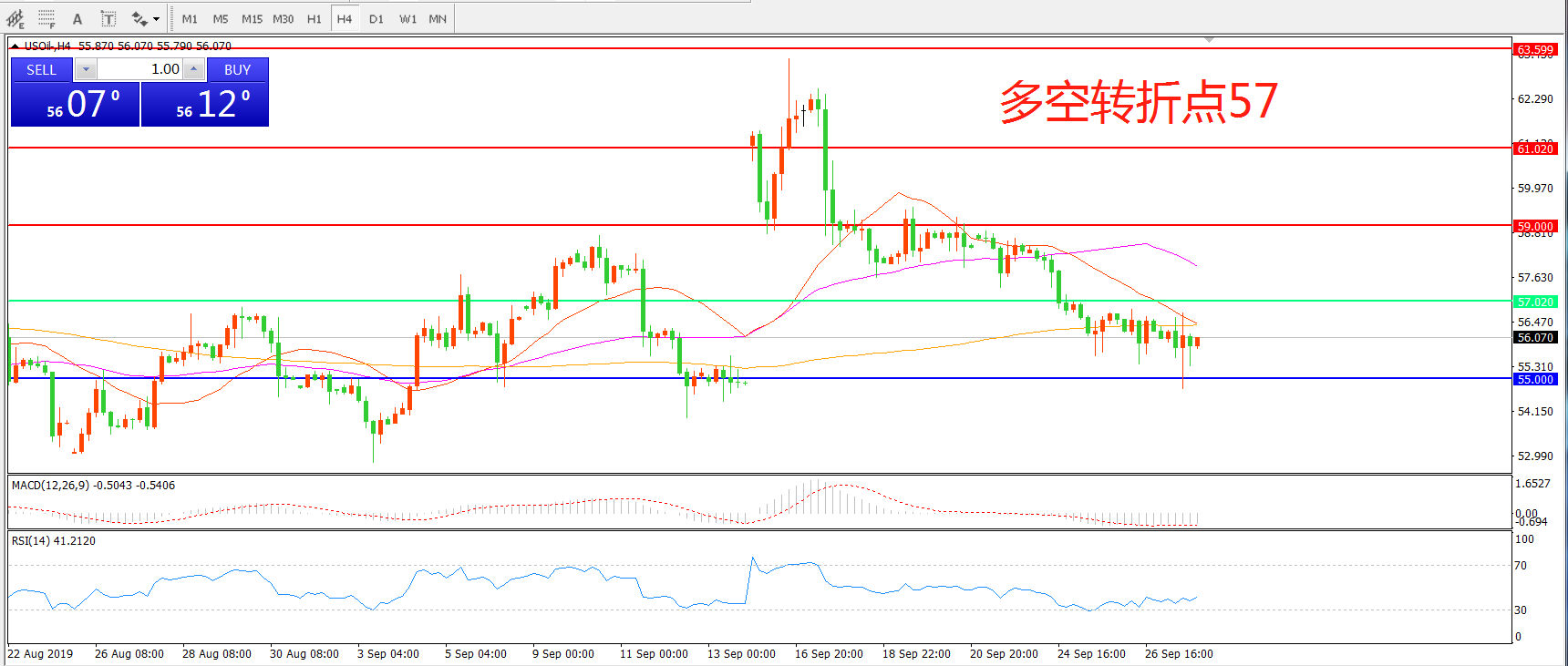 交易策略: 在57.00之下看跌,目标55.00 52.50