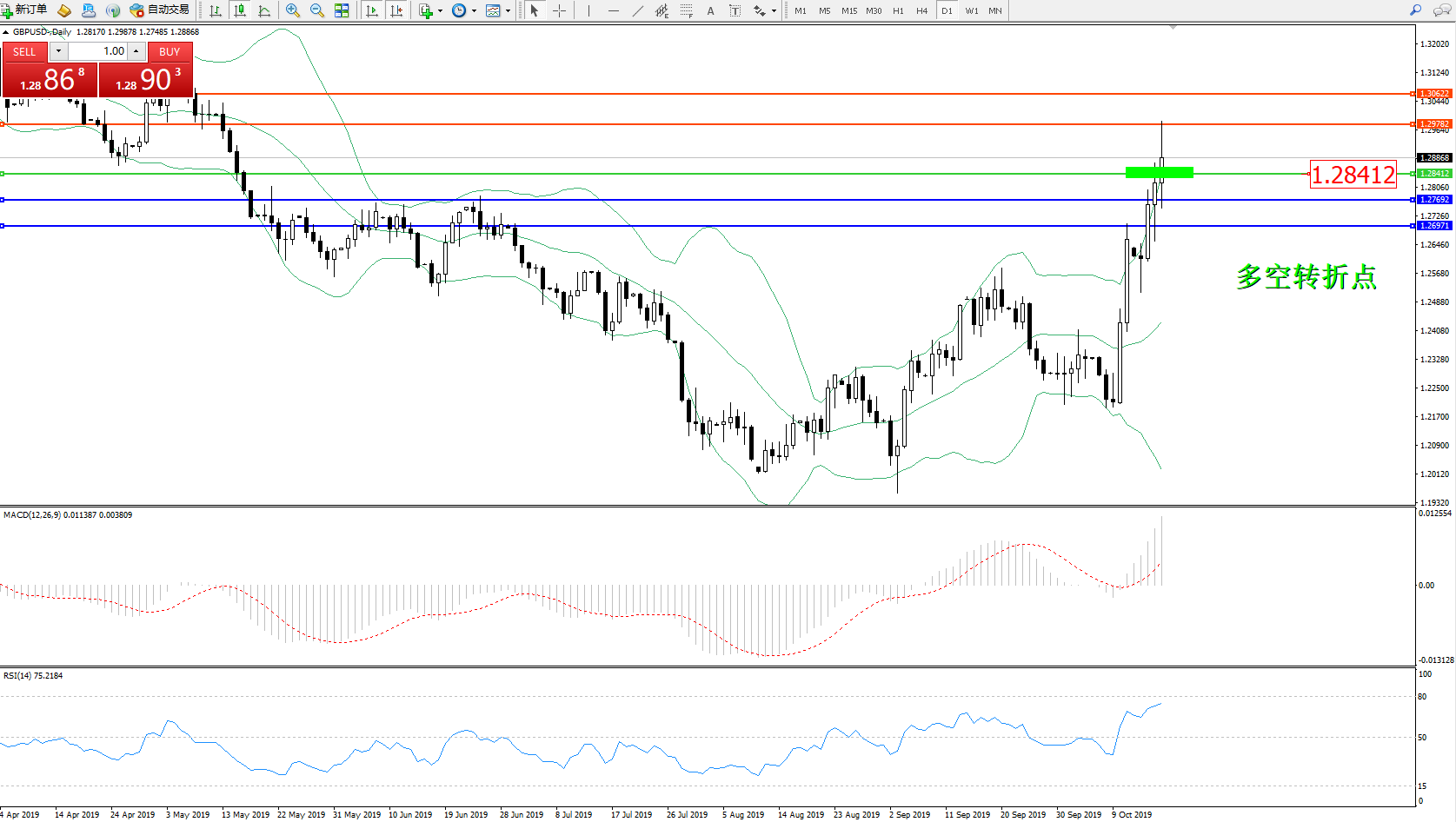 交易策略:1.28412上方看涨,目标1.29782、1.30622
