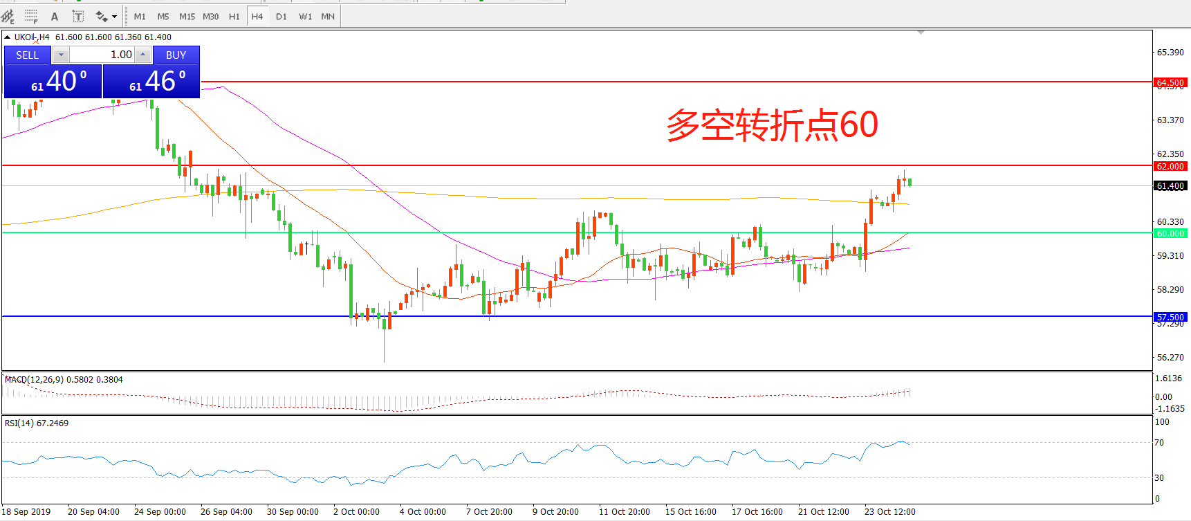 交易策略:在60.00之上看涨,目标62.00 64.50