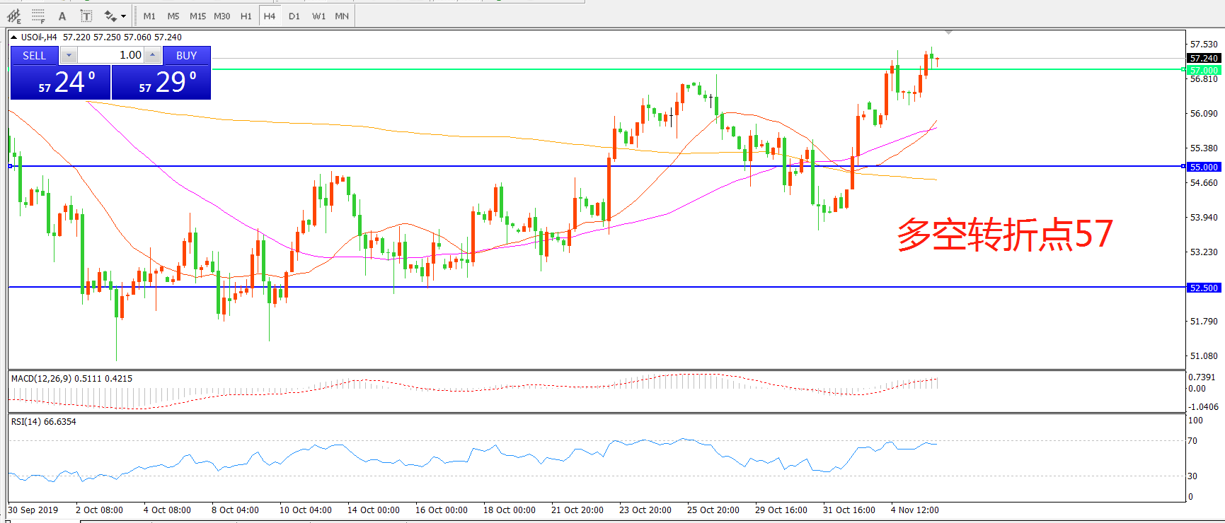 多空转折点:57.00