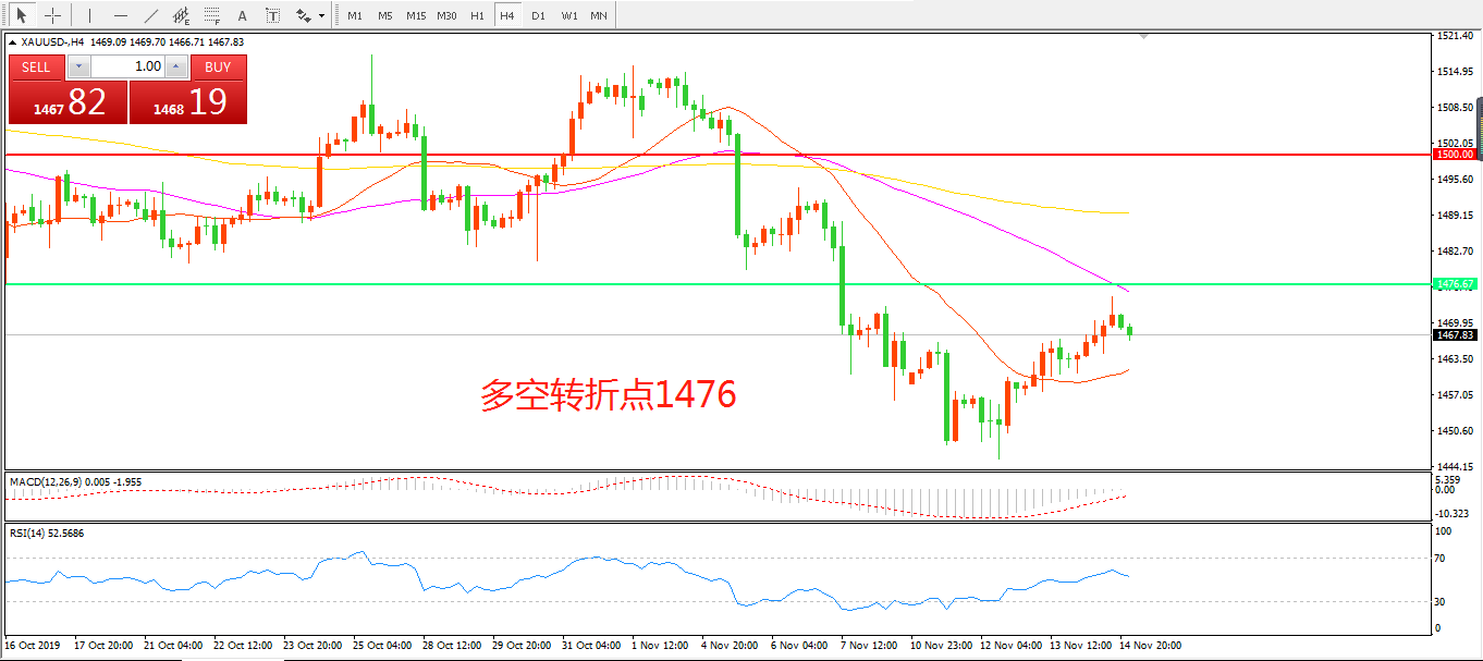 交易策略:在1475.00之上看涨,目标1500.00 1540.00