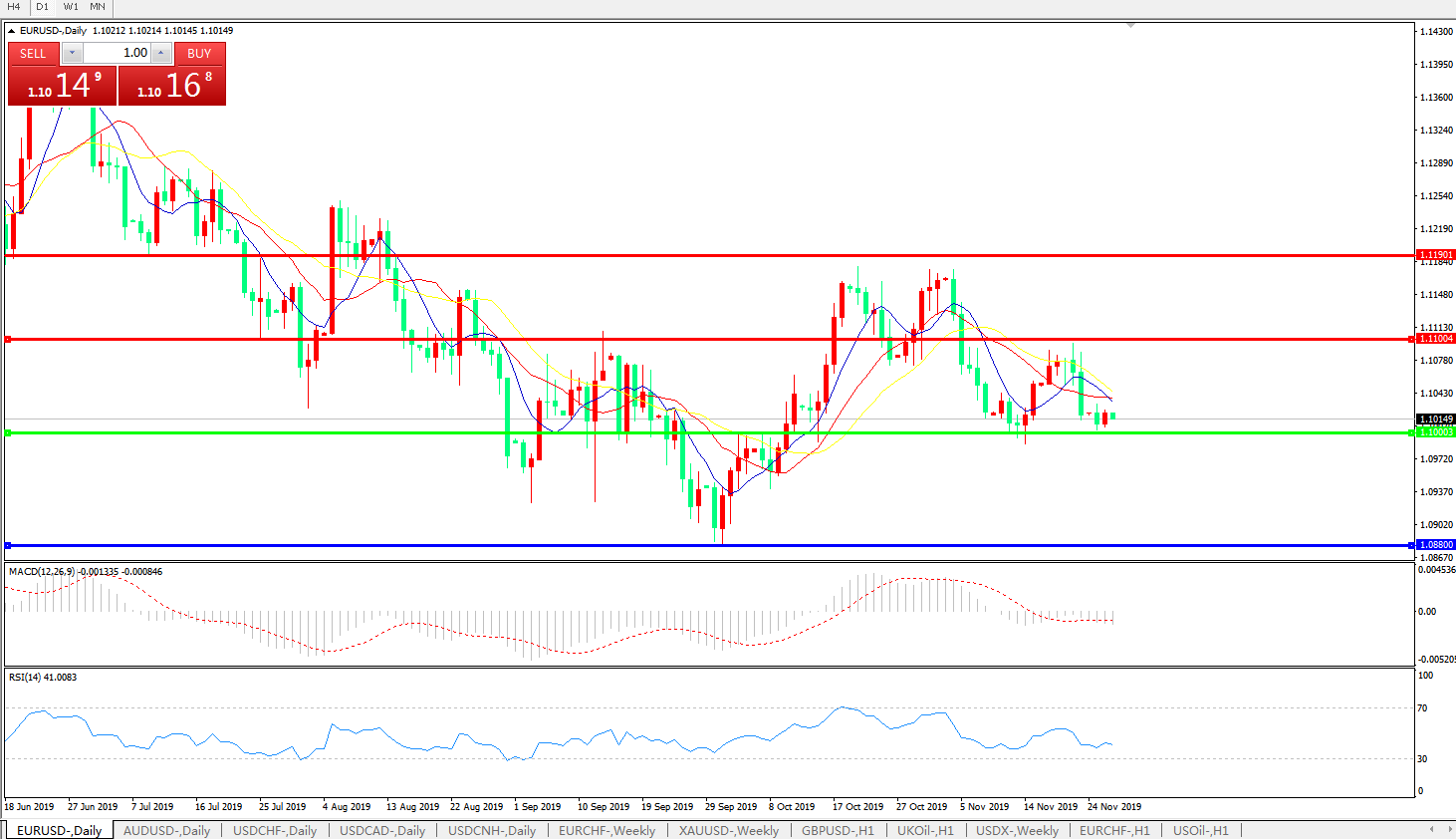 交易策略:1.1000上方看涨,目标1.1100、1.1190