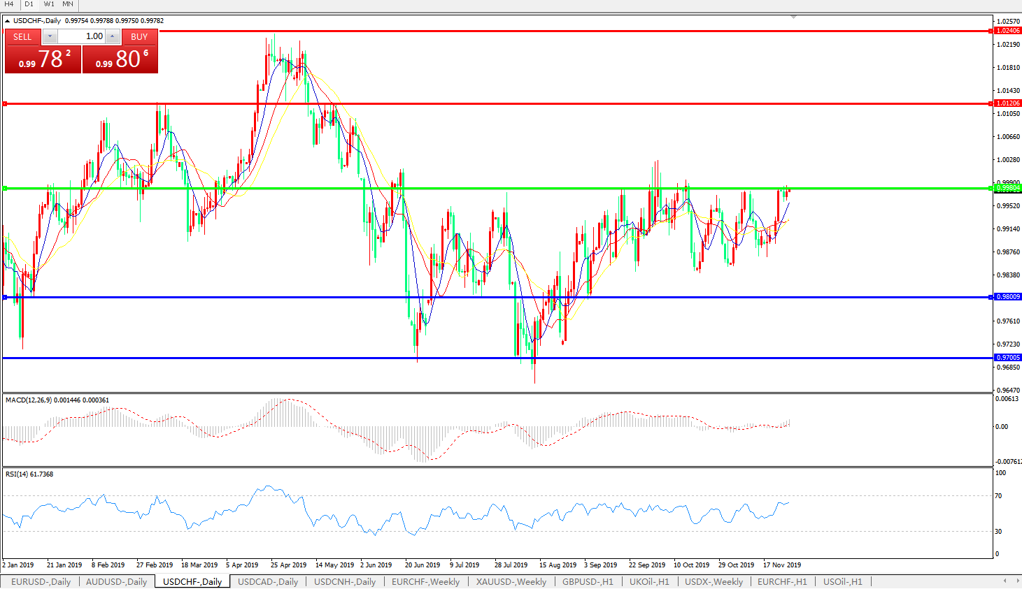 美元兑瑞郎USDCHF    日线