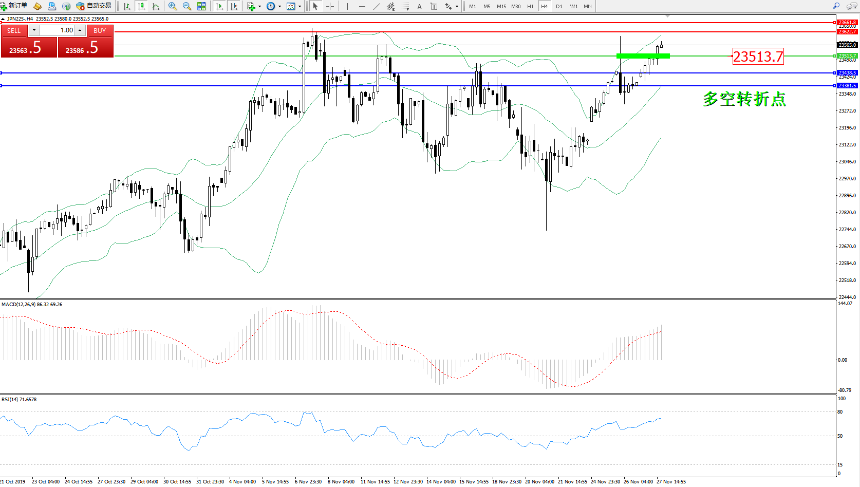 日经225指数11月27日(周三)收盘上涨69.18点,涨幅0.30%,报23442.50点。日本央行委员樱井真:国际货币基金组织建议在区间内设定价格目标是一个想法,但我们的目标是实现2%的通胀率,目的是达到物价目标,尽管需要一点时间,目的是达到物价目标,尽管需要一点时间,当前不是需要积极采取行动的时机,收益率曲线已经维持平稳,如果经济面临快速严重的下滑,日本央行可能需要动用所有可用的工具,如果经济下滑幅度较小,央行可能没有必要布局所有可用的工具,央行应当使用何种工具来抵御冲击取决于当前的经济发展状况.