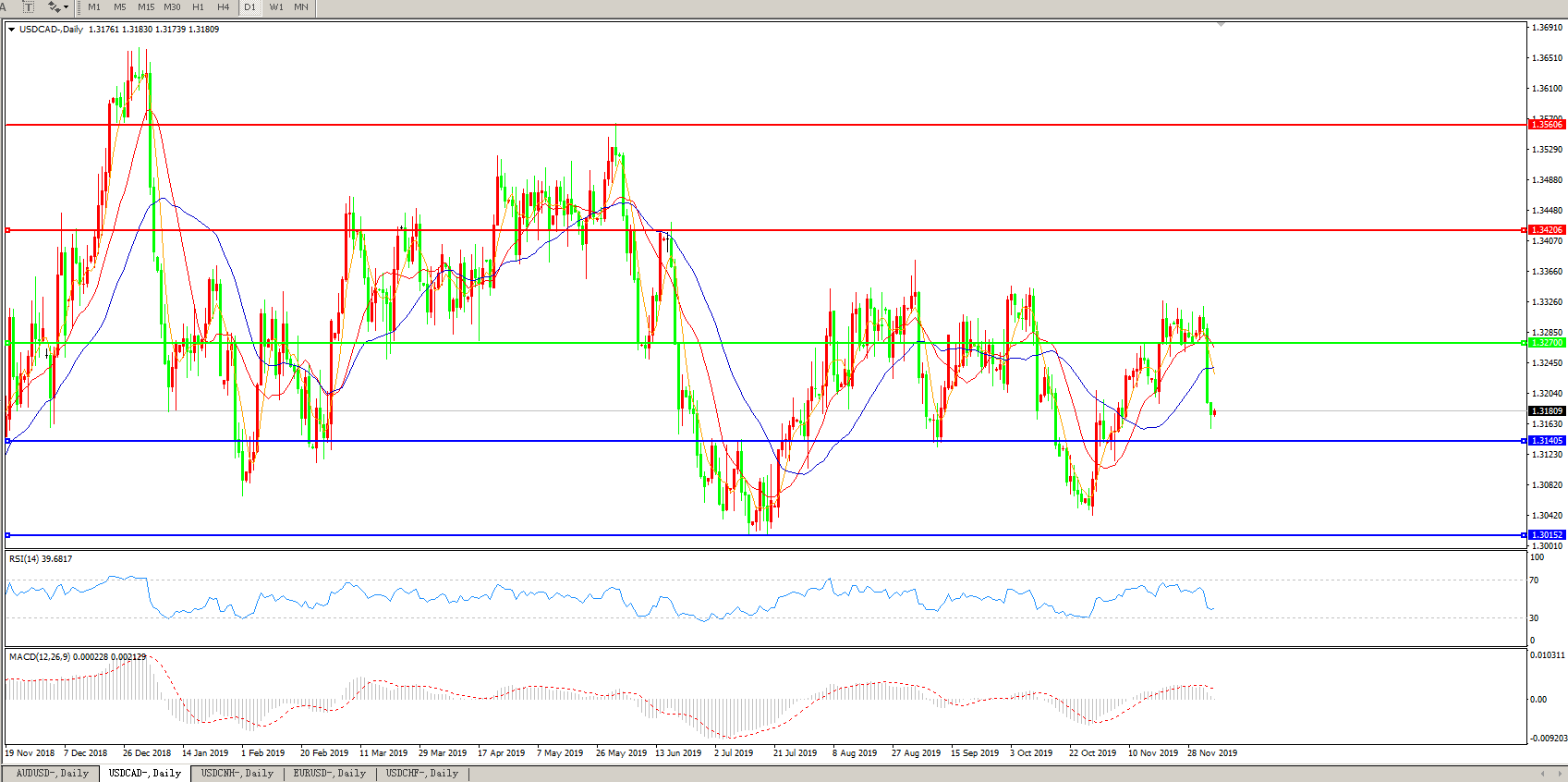 美元兑加元在周三加拿大央行决议前后录得大幅跳跌,回吐了过去一个月以来的涨幅,周四日内美元兑加元继续承压,跌破1.32关口,因投资者预估美加两国经济与货币政策前景将再度出现分化;加拿大央行在周三的决议措辞中对该国经济释放了积极基调,这和美国经济前景自上周以来再遭贸易风险前景困难的局面,正好形成了鲜明的反差。而市场眼下则更密切地关注着之后周五美加两国同时发布的11月份就业数据。而此前美国ADP就业数据意外大幅逊色的状况,已经向投资者给出了提前暗示; 这意味着汇价在连续三次上攻1.33上方的阻力位无果后,正掉头开始新一轮波段行情,短线目标位在9月份的低点1.3134,若失守,则年底之际可能进一步下探至1.3050一线寻觅支撑,但长期来看,1.30心理关口在没有特别“黑天鹅”消息的前提下,仍将无恙。