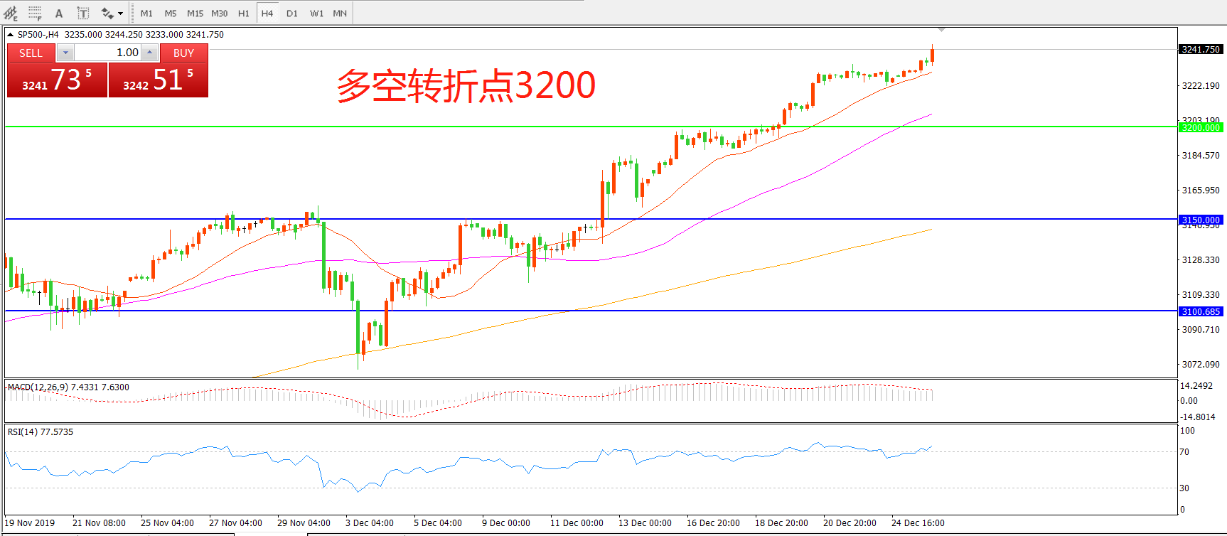 多空转折点:3200.00
