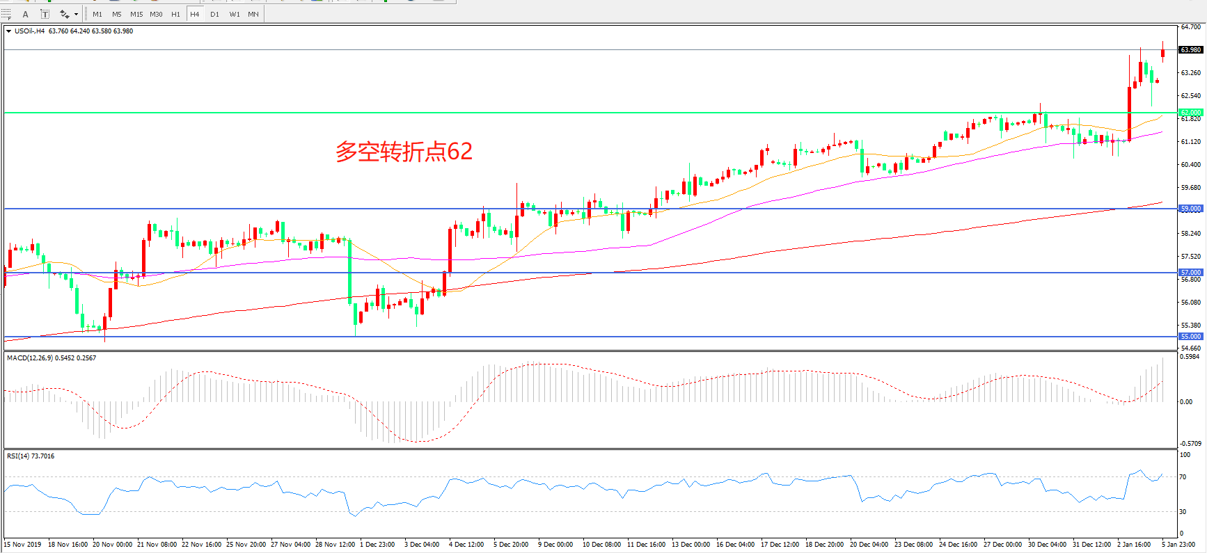 交易策略: 在62.00之上看涨,目标65.00       70.00