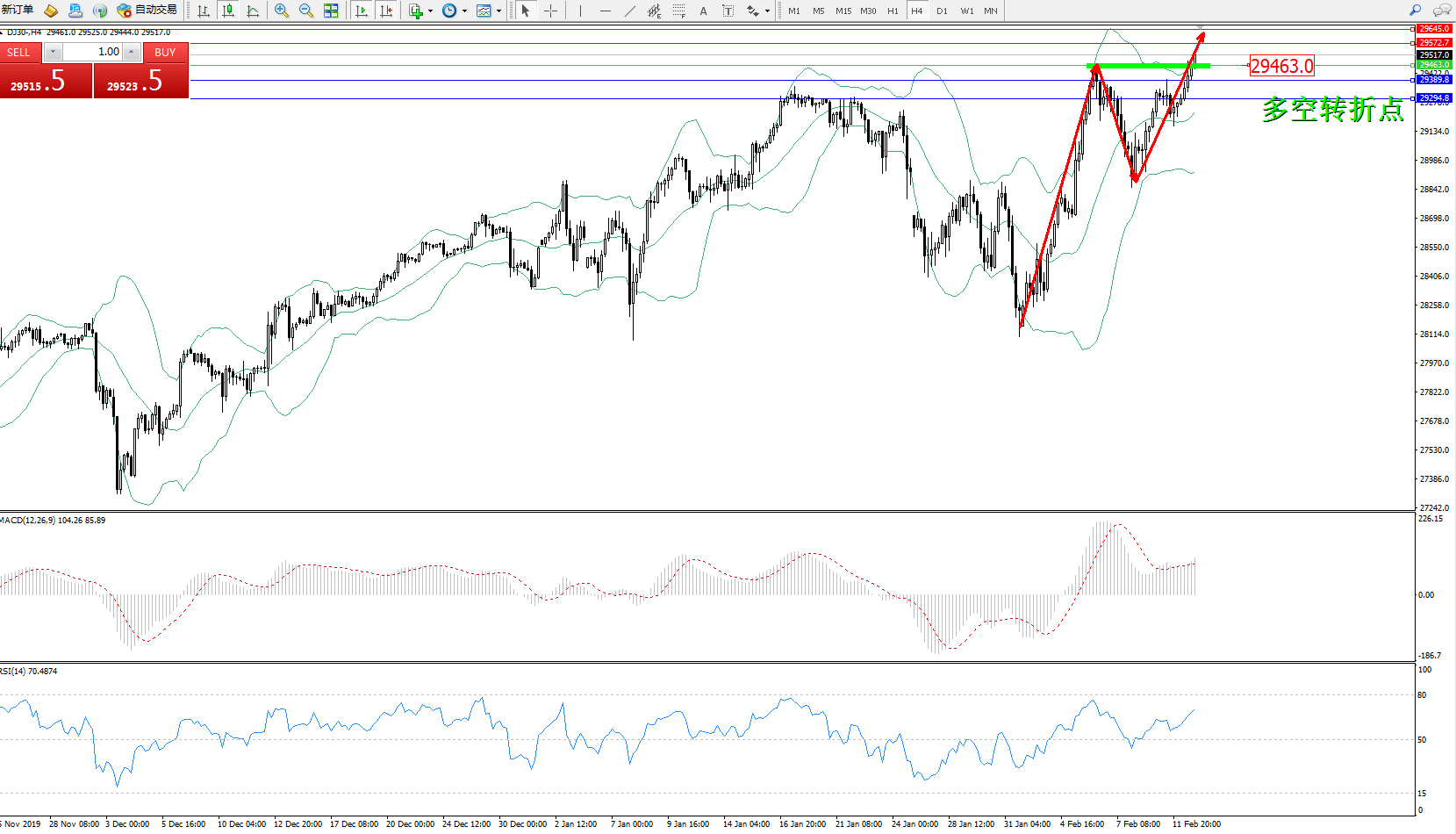 技术点评:多头动力持续上攻,突破前期高位后有继续上行态势,布林带指标呈张口走势中,且有突破上轨附近压制节点态势,MACD指标处于多头区域持续整理缓慢向上移动中,RSI指标处于多头区域窄幅整理持续上行中;