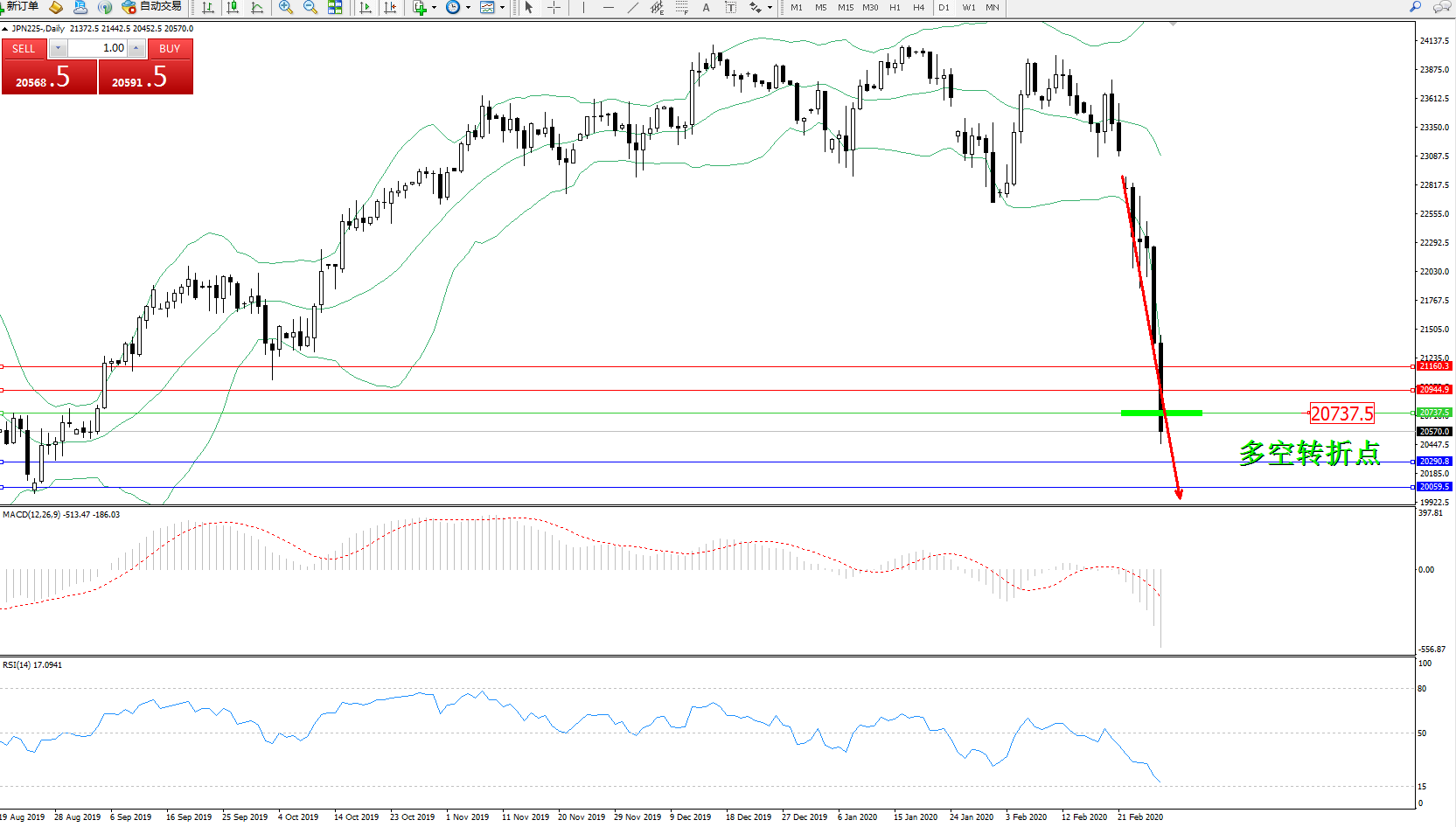 日经225指数2月28日(周五)收盘下跌907.73点,跌幅4.14%,报21040.50点。日本1月份工业产值的增速放缓,增添了制造业在受到卫生全面影响之前就已经持续疲软的迹象。日本贸易省周五公布,1月份工业产值环比增长0.8%,增幅低于12月的1.2%。经济学家此前预计环比增幅为0.2%。产出水平仍远低于夏季末。环比数据通常波动较大。此外,反应职位空缺数量的数据在1月份急剧下降。劳动省称,这主要是由于今年初开始生效的职位招聘程序变化;1月份工业产值增速放缓是在卫生所导致的供应链中断成为全球主要问题之前,显示出日本制造商疲弱的处境。上周公布的日本制造业采购经理指数显示,制造业出现七年多来最严重的萎缩。大多数分析师现在预计日本将在本季度陷入衰退。在截至12月的三个月中,经济大幅下滑,因销售税上调导致消费低迷,加剧了出口疲弱和台风带来的损失。